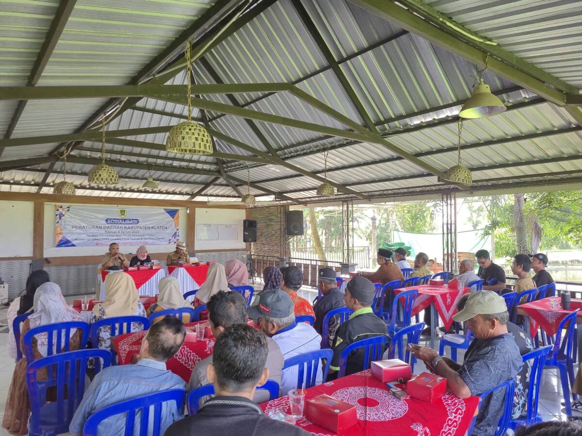 BERITA KLATEN – Badan Pengelolaan Keuangan Pendapatan dan Aset Daerah (BPKPAD) dan Komisi 2 Dewan Perwakilan Rakyat Daerah (DPRD) Kabupaten Klaten yang membawahi bidang Perekonomian dan Keuangan mengadakan sosialisasi peraturan daerah (Perda) Nomor 8 Tahun 2025, Kabupaten Klaten, di Pancingan Banyu Mili Desa Pasung, Kecamatan Wedi, Klaten, Jawa Tengah, Selasa (14/4/2026).