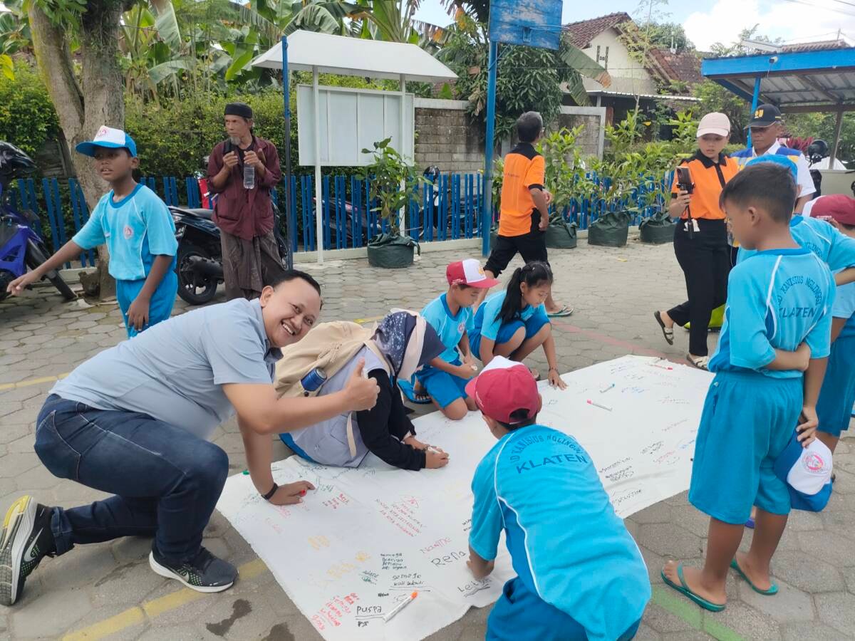 BERITA KLATEN – Gerakan gegap gempita dilakukan para siswa Sekolah Dasar Kanisius (SDK) Nglinggi, untuk membersihkan sampah-sampah di sungai saluran irigasi di Desa Nglinggi, Kecamatan Klaten Selatan, Klaten, Jawa Tengah, Kamis (11/12/2025) pagi.
