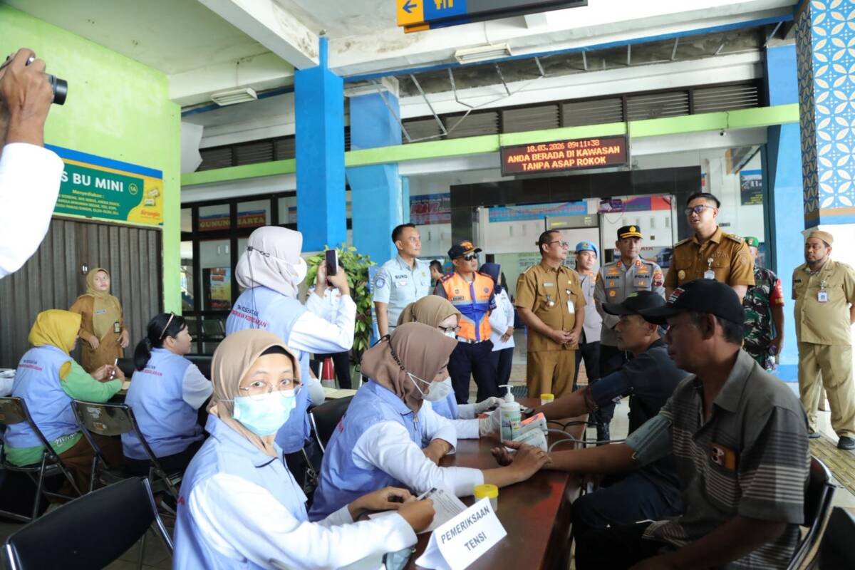BERITA KLATEN – Satuan Lalu Lintas (Satlantas) Polres Klaten bersama instansi terkait melakukan pemeriksaan kesehatan pengemudi, kernet, dan ramp check armada bus sebagai langkah antisipasi keselamatan arus mudik lebaran tahun 2026 di Terminal Ir Soekarno Klaten, Jawa Tengah, Selasa (10/3/2026).