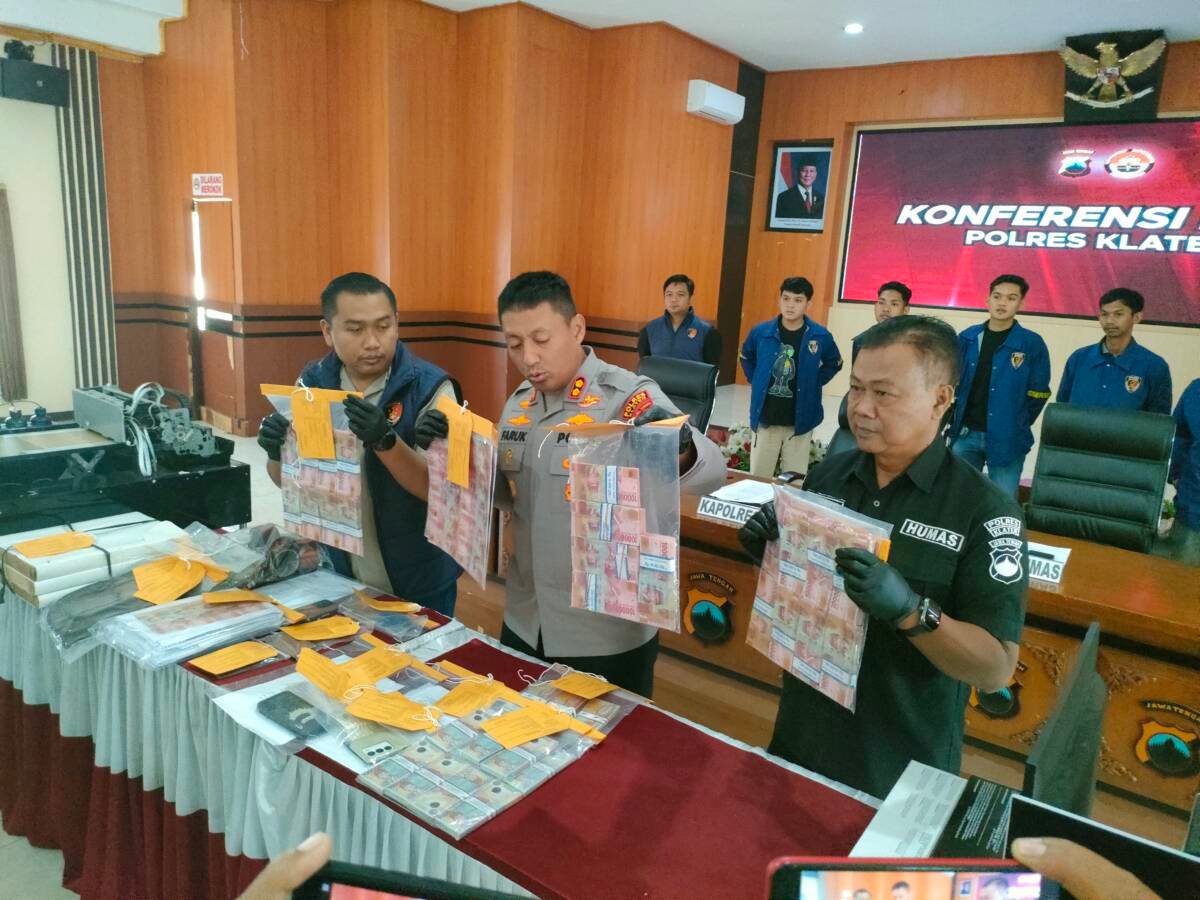 “Dalam pengembangan ke wilayah Garut, Jawa Barat berhasil mengamankan dua tersangka ND dan MYD. Di Garut berhasik menemukan upal pecahan 100 ribu terbitan tahun 1999 atau model lama dan baru, juga menemukan alat cetak,” tutur Kapolres Klaten.