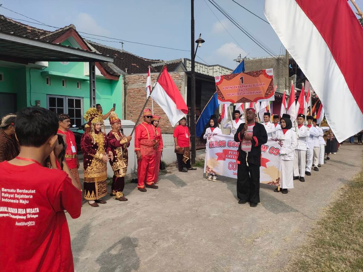 Karnaval budaya dan potensi desa wisata diikuti warga masyarakat dari 10 rukun warga (RW). Untuk kegiatan karnaval setiap RW mengirimkan peserta kontingen. Ketentuan dari panitia setiap kontingen karnaval minimal terdiri dari 50 orang, boleh anak hingga orang dewasa. Karena itu kontingen peserta karnaval ada yang lebih dari 50 orang. Peserta karnaval untuk merayakan HUT ke-80 RI ada 11 kontingen.